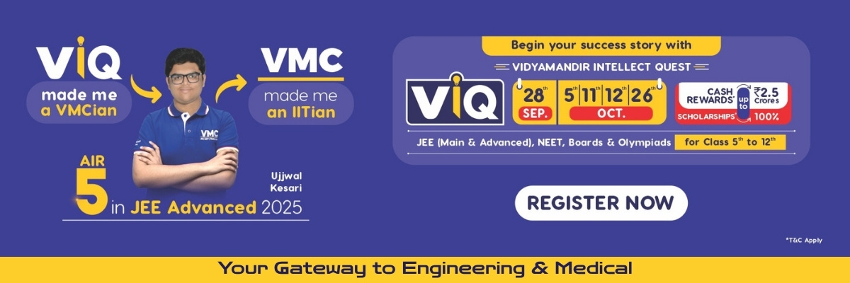 Vidyamandir Classes, the leading name in the country for over three and a half decades for the preparation of JEE, NEET, INSPIRE (erstwhile KVPY) NTSE, Boards & Olympiads brings an amazing opportunity for students of Class V, VI, VII, VIII, IX, X & XI (moving to Class VI, VII, VIII, IX, X, XI & XII in 2026) to pave their way towards an illustrious future with VMC’s biggest & most awaited exam Vidyamandir Intellect Quest Test (VIQ) which is scheduled to be held on 6th, 13th, 19th & 20th October 2024. This test will equip students with the VMC advantage that will allow them to explore their intrinsic potential and also open doors to a world of competitive & scholastic exams. In short, this test, in essence will firmly set them on the path of achieving their targeted goals and to an illustrious & bright career.