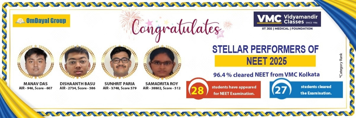 Over the years, the name of Vidyamandir Classes Kolkata (VMC) has become the best IITJEE and NEET Coaching Centre in Kolkata with success in IITJEE (Engineering) & NEET (Medical). Vidyamandir Classes Kolkata has for several years now designed, delivered, perfected and innovated the art and science of teaching and guiding students for entrance exam for the IITs, which are recognized as the Premier Technology Institutions across the world.
